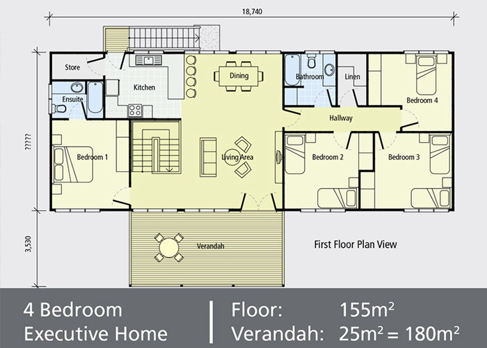 - Имеется 155 м² площади и 25 м² веранды, всего 180 м²