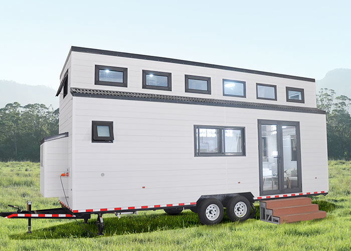 Маленький дом на колесах с солнечными батареями и готовый к отправке