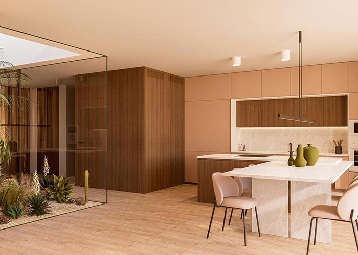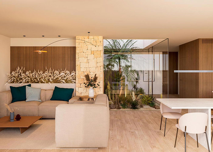 Расположенный на просторном участке размером 27 на 26 метров, дом Сува предлагает около 347 квадратных метров жилой площади. Планировка в форме буквы H образует четыре отдельных крыла, расходящихся от центрального хребта, а пустоты между этими объемами образуют защищенные открытые зоны. Центральный внутренний двор, расположенный в самом сердце дома, предлагает возможность для бассейна, создавая фокусную точку, видимую из нескольких внутренних помещений.